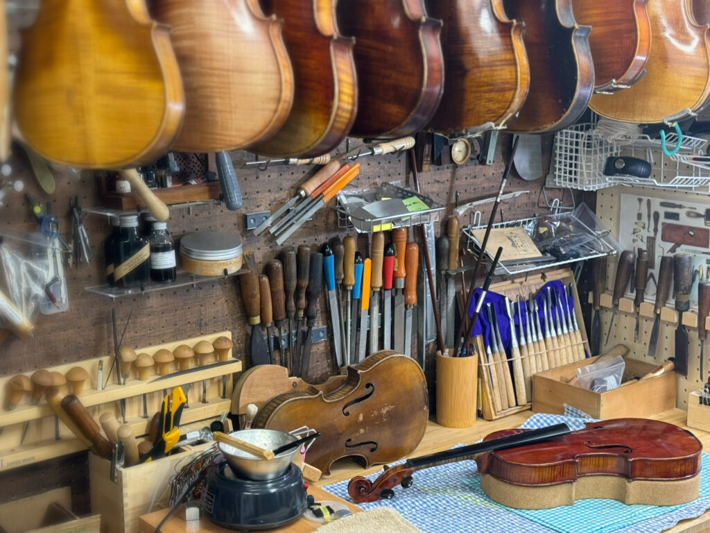 Maple Musicでは、専門技術を持ったスタッフがヴァイオリンの修理・調整、弓の毛替え等行っております。
